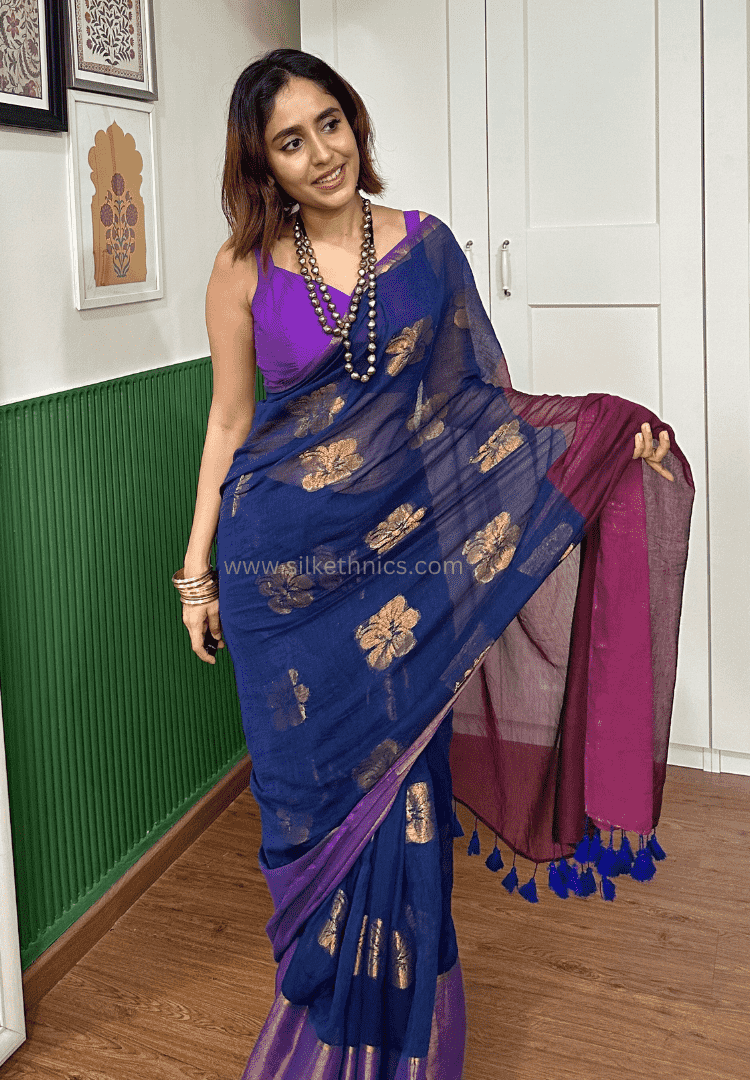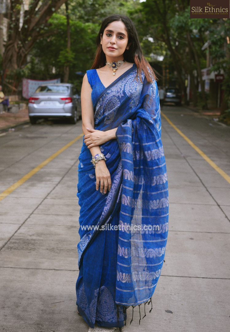 Cobalt blue Aarti linen saree