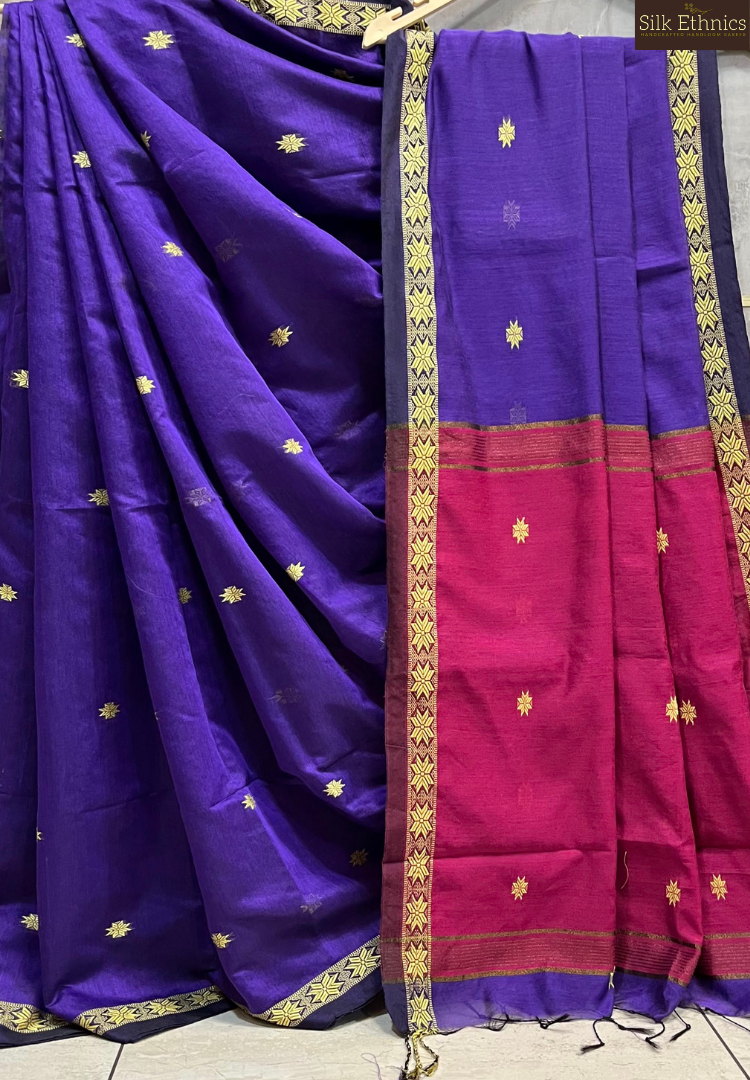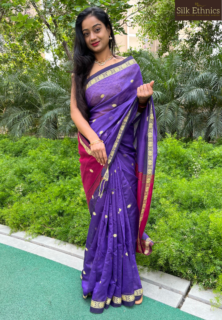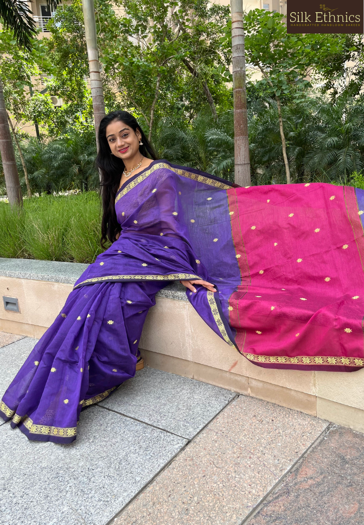 Purple Maheswari silkcotton saree