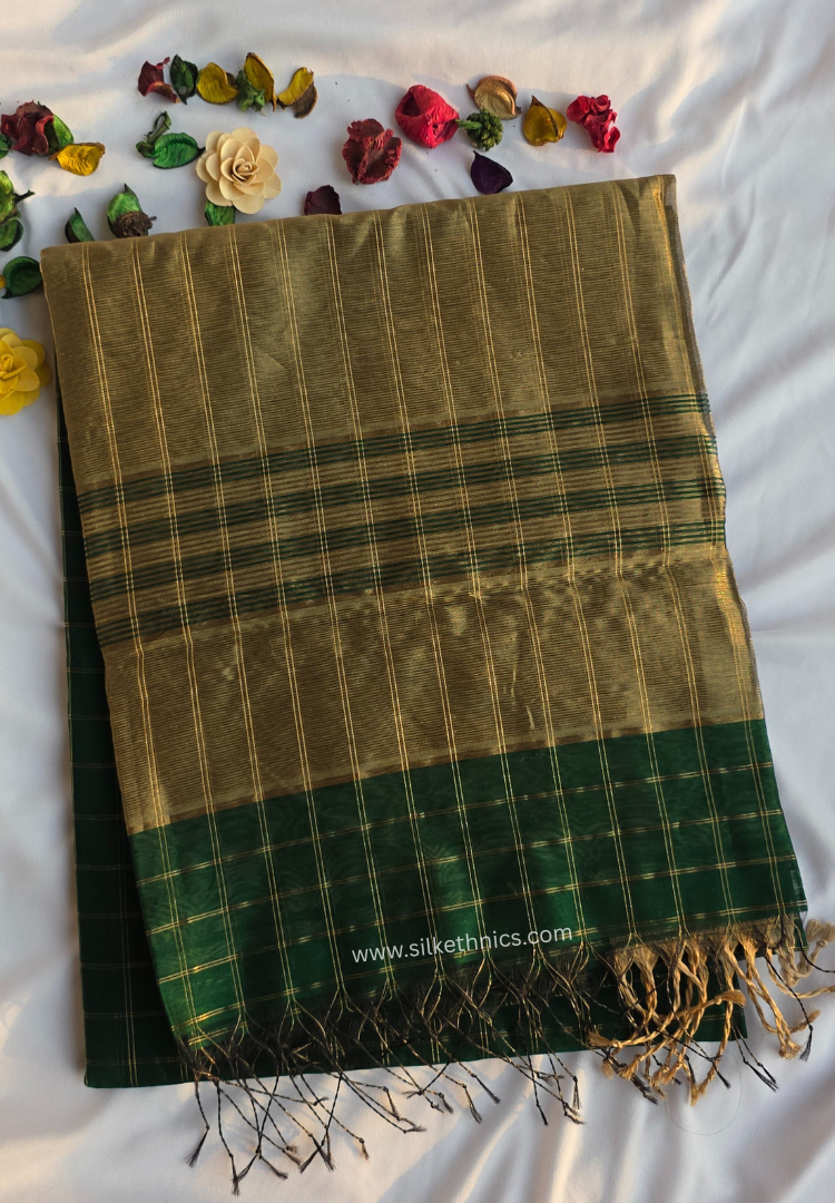 Forest Greeen Maheshwari Pure Handloom Silk saree