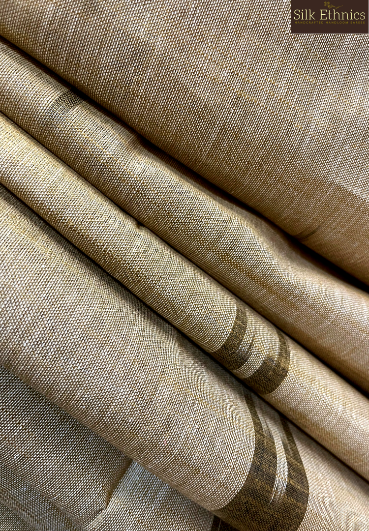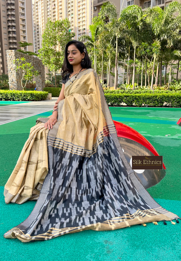Gold and black linen ikkat weaving saree