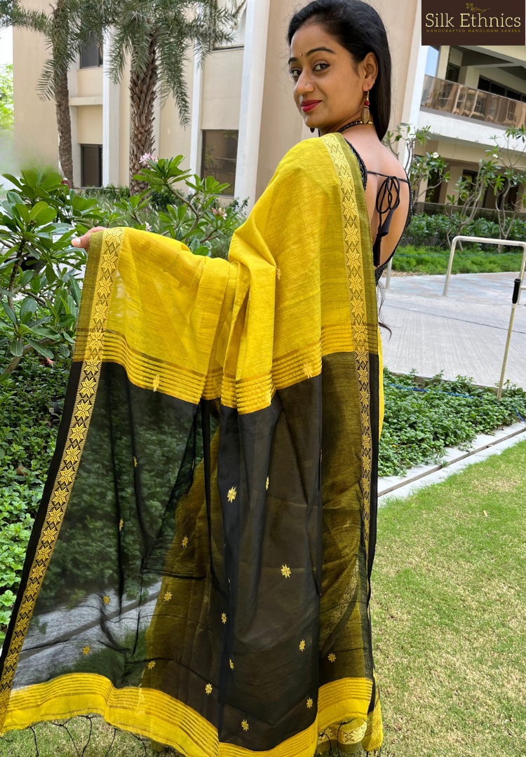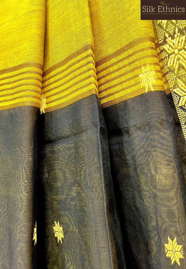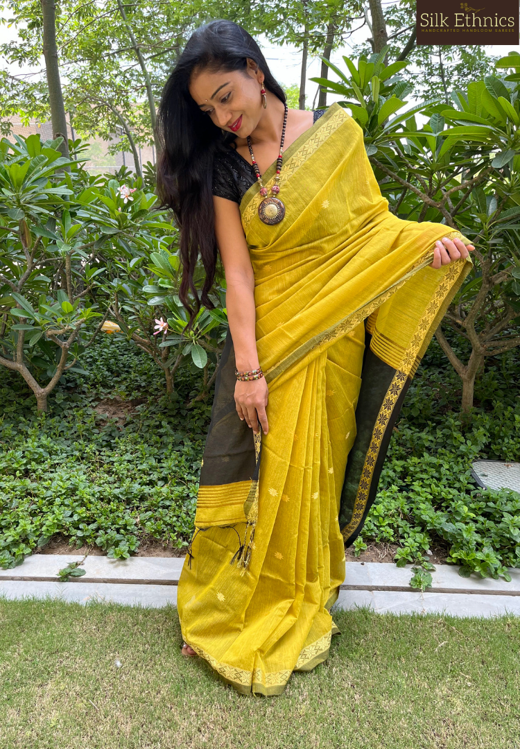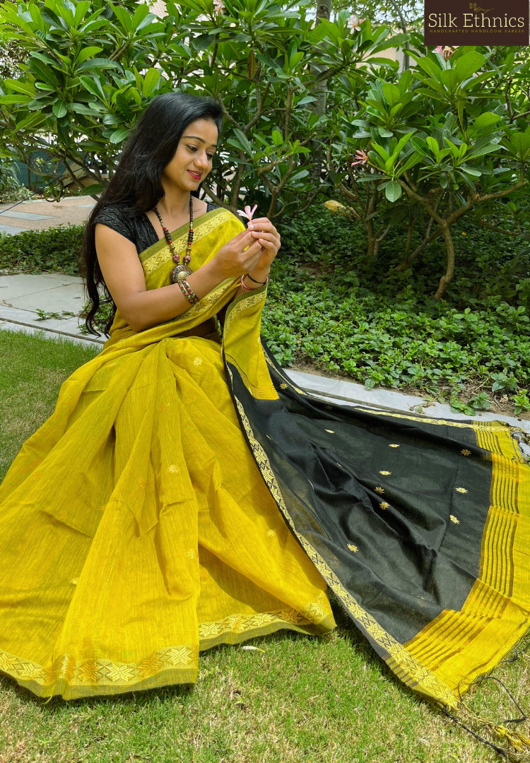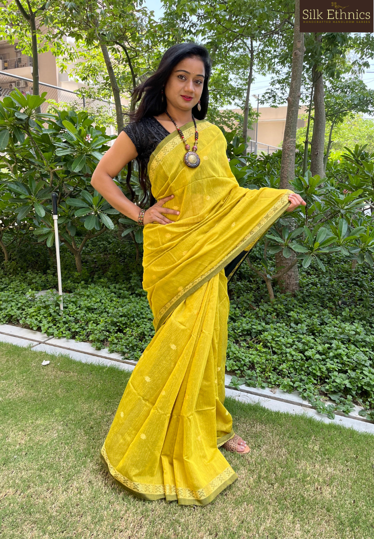 Handloom fabric is woven on a loom manually by a skilled weaver. Each handloom piece is a work of art which uniquely displays the weaver's craftsmanship. The beauty of this quintessential fabric is that no two hand-loomed fabrics can be similar-looking. And pls note that getting minute flaws in fabric is very common. The imperfections in this perfect fabric can be anything from an uneven yarn to a faded print. Beauty of a original handloom saree lies in its imperfections.