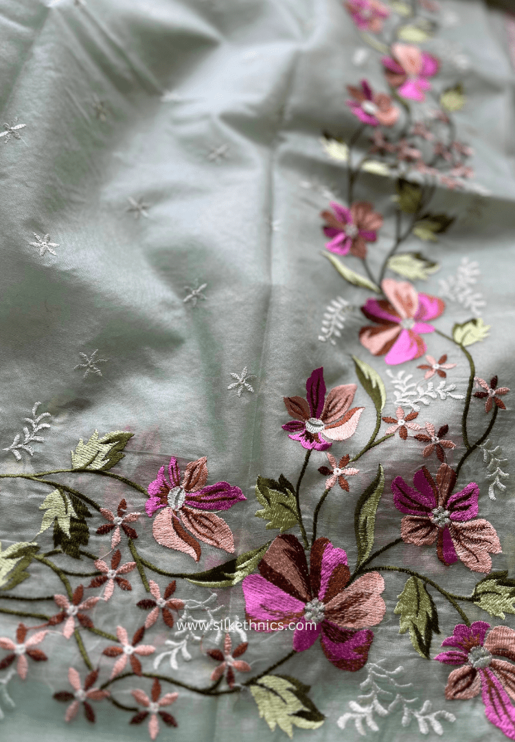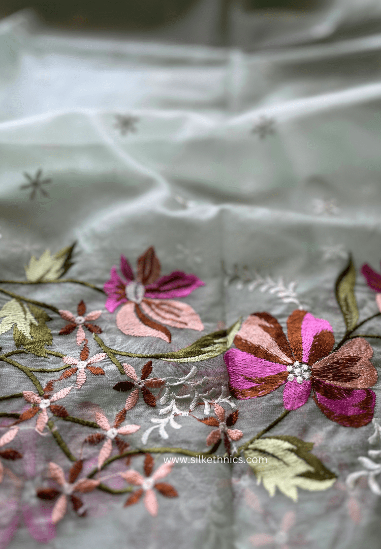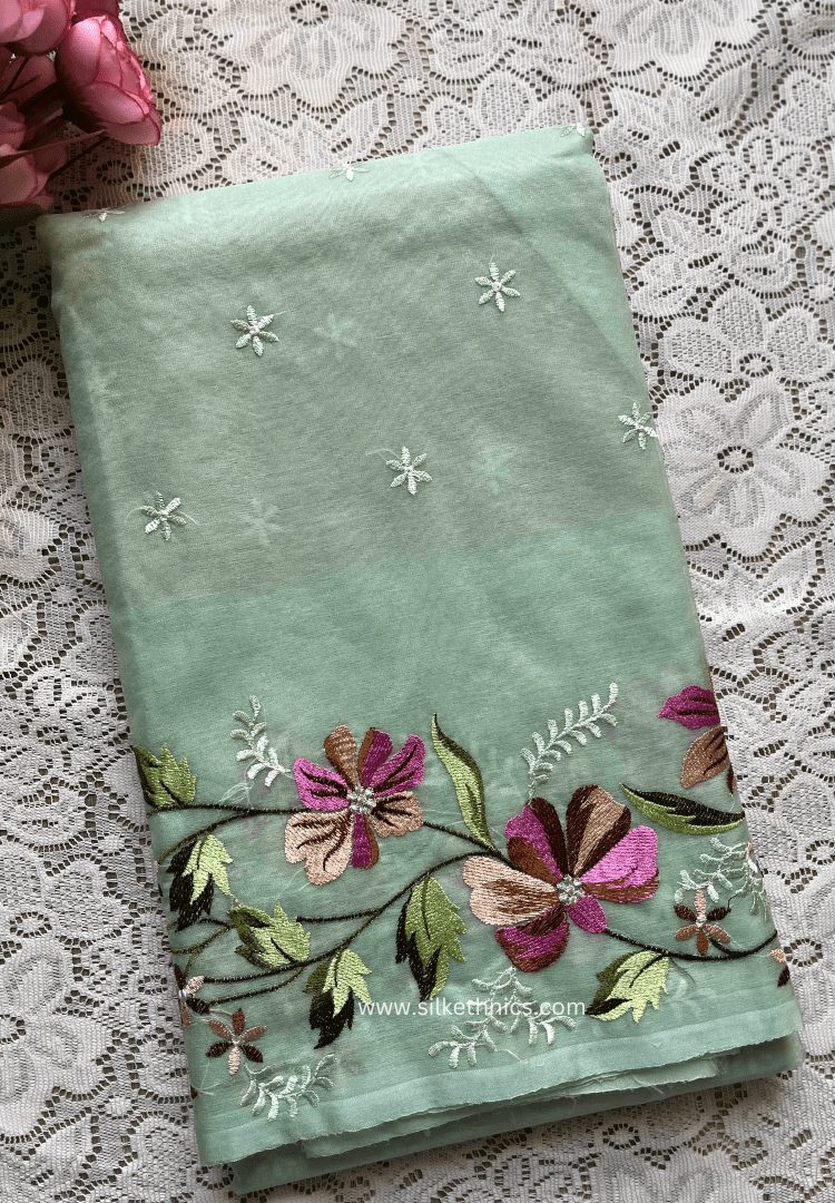Pastel green Gul bahaar organza saree