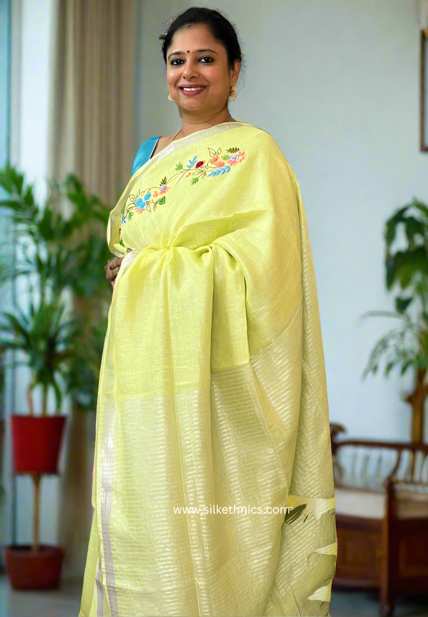 Pastel yellow Sitara linen saree