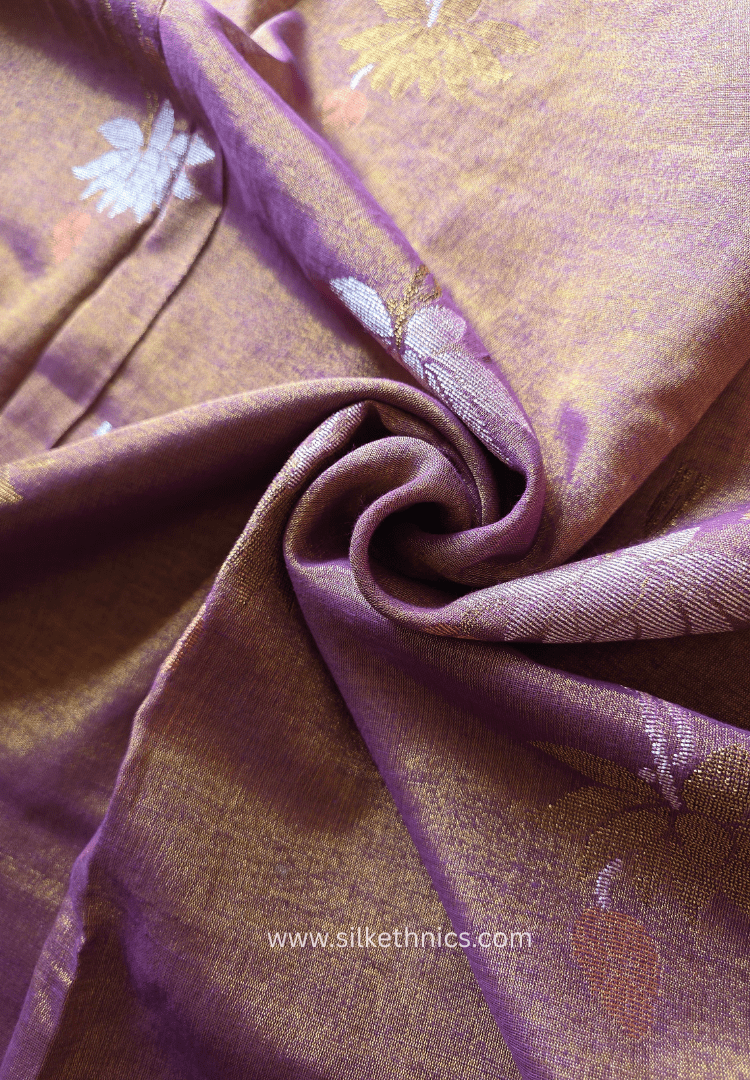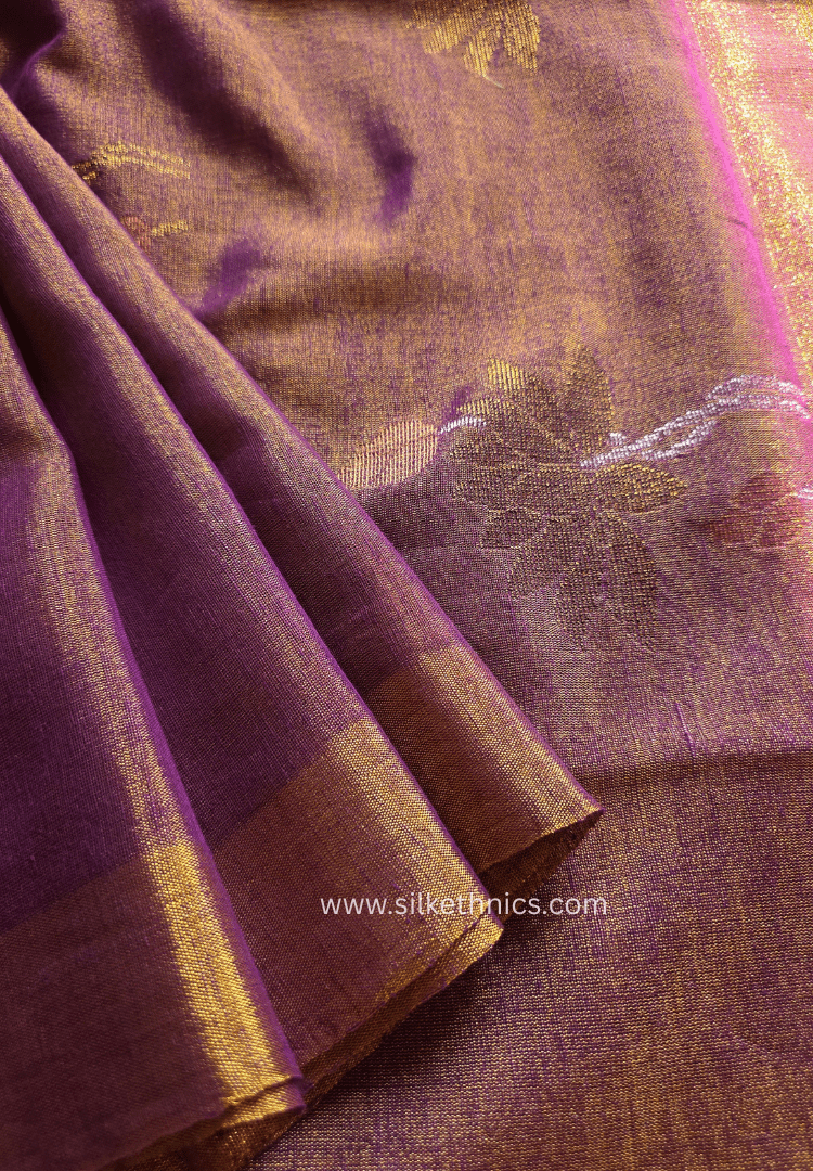 Rose Gold Lotus Tissue Linen handloom Saree
