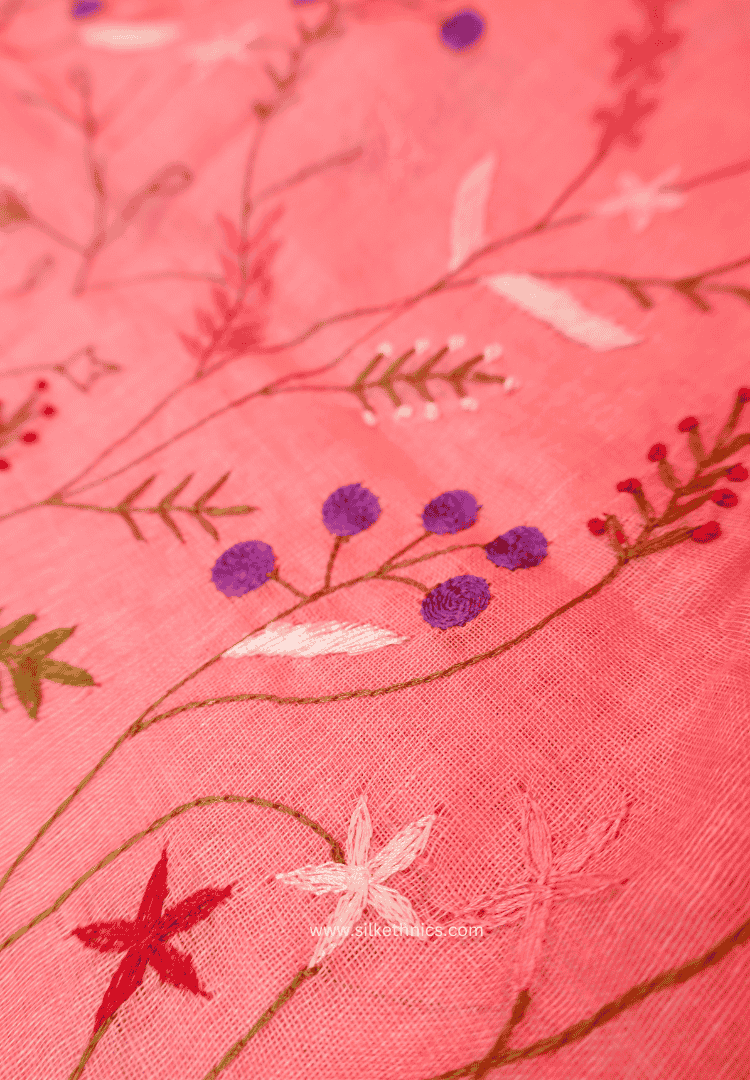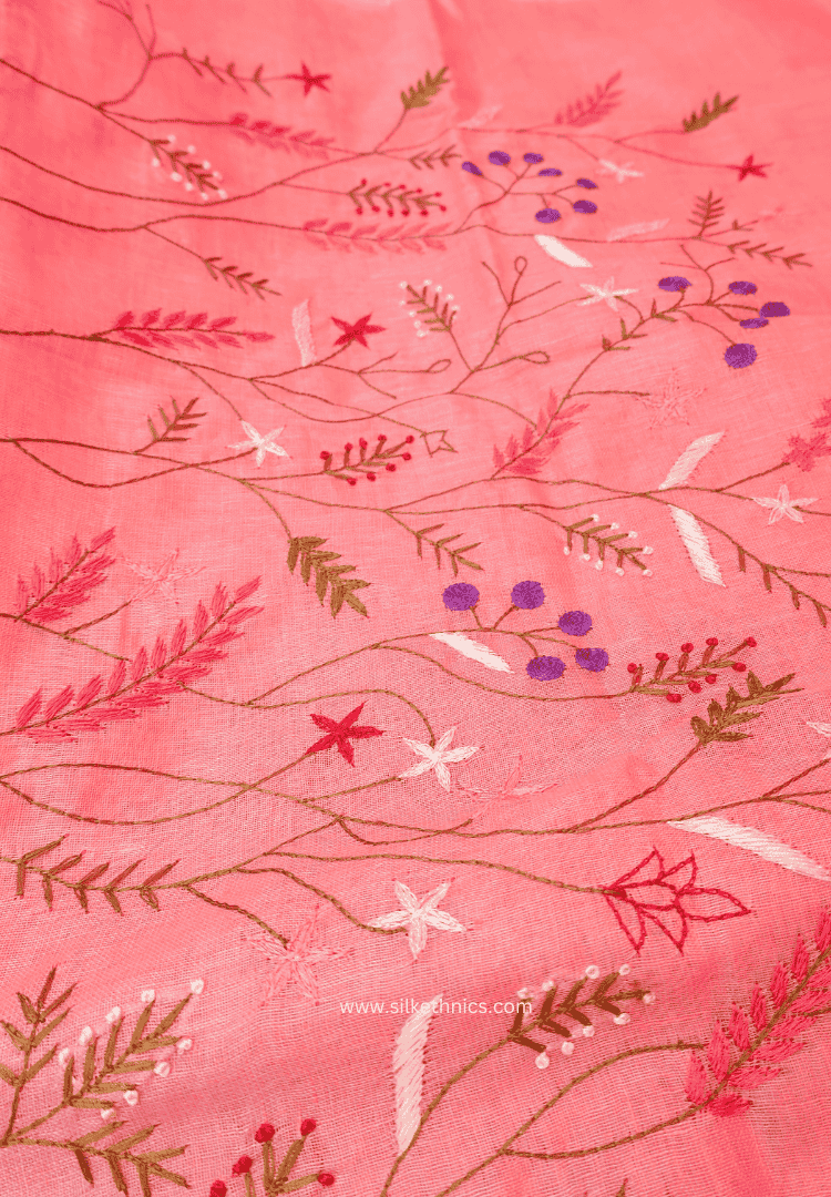 The Rose pink Sitara linen saree combines a pleasant, soft hue with intricate embroidery, creating an elegant and sophisticated look. Its lightweight fabric makes it easy to carry, ideal for both professional settings and casual outings. Perfectly balancing style and comfort, this saree enhances your wardrobe with timeless grace.