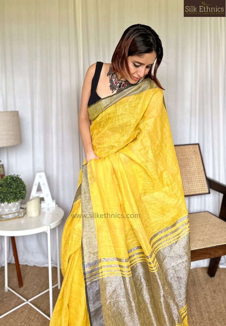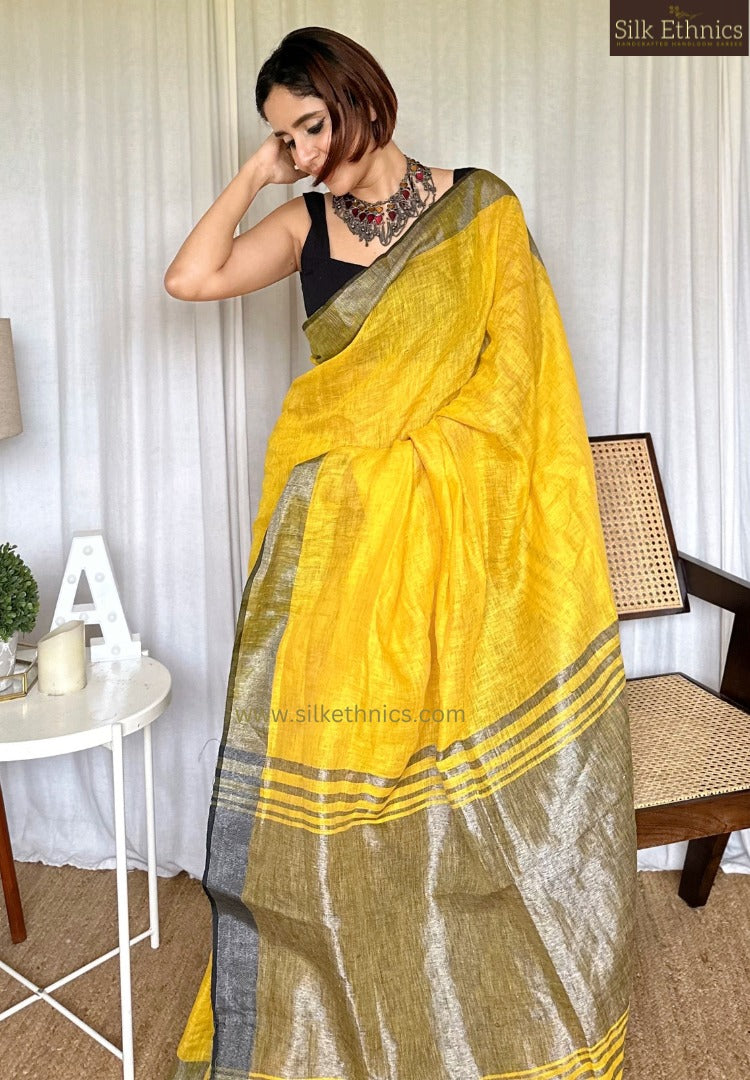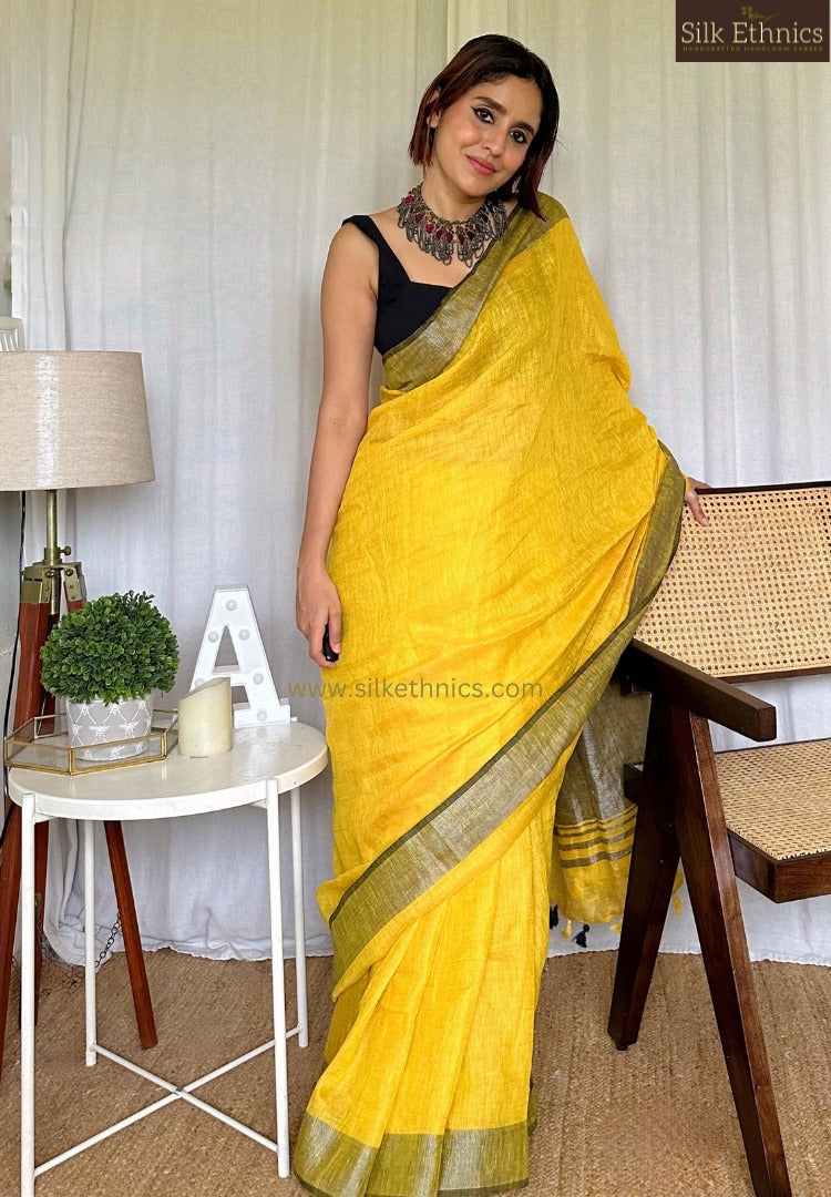 Indulge in luxury and sophistication with our Royal Mustard Fine Linen Saree. Made from the finest linen, this saree exudes elegance and exclusivity. Its mustard hue adds a touch of vibrancy to any occasion. Elevate your style and embrace a world of art and fashion with this premium saree.