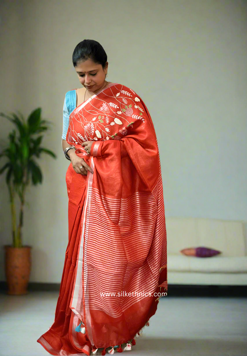 Royal Red Sitara linen saree