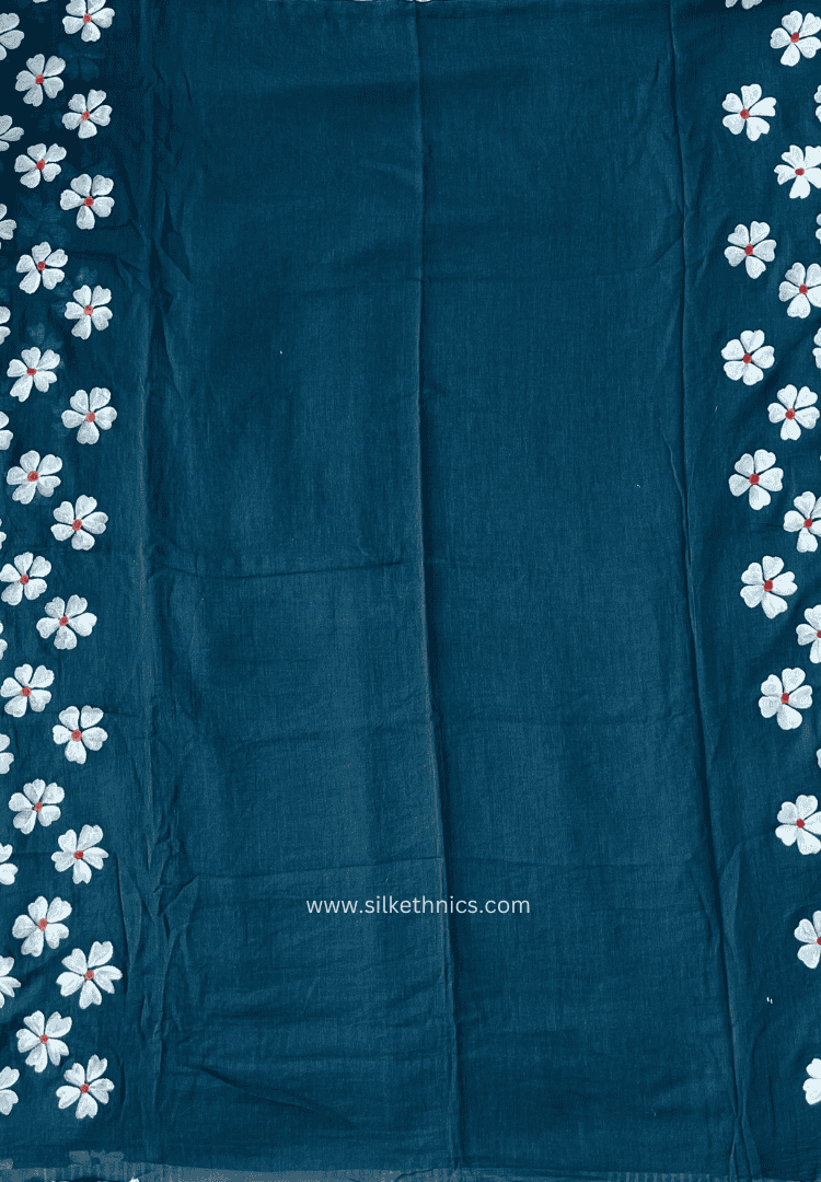 Indulge in the luxurious elegance of our teal green Swetha Mul cotton saree. The vibrant and unique shade adds a touch of exclusivity, while the flowy fabric ensures a perfect drape. Suitable for both office and casual wear, this saree is a must-have in every sophisticated wardrobe.
